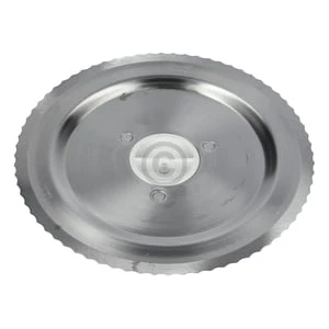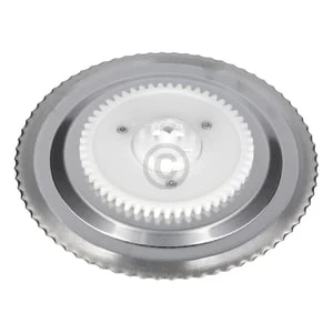 Runde Schneidscheibe mit 53 Zähnen am weißen Zahnrad.